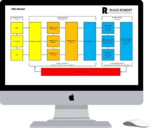 De werkwijze is gebaseerd op het INK-managementmodel. Dit model biedt een toegankelijke en complete kijk op uw organisatie en vormt het fundament van de aanpak – van analyse tot verbetering.